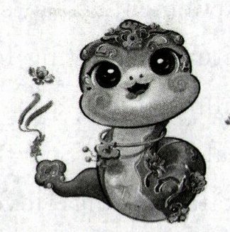 )1.Look at the picture on the right,Si Shengsheng will appear at the Spring Festival Gala in 2025 to welcome the Year of the Snake. Its ____ is from traditional culture and represents good luck.A.photo