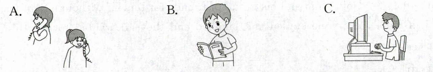 )6. How did the boy go to school this morning?A. On foot. B. By bike. C. By bus.