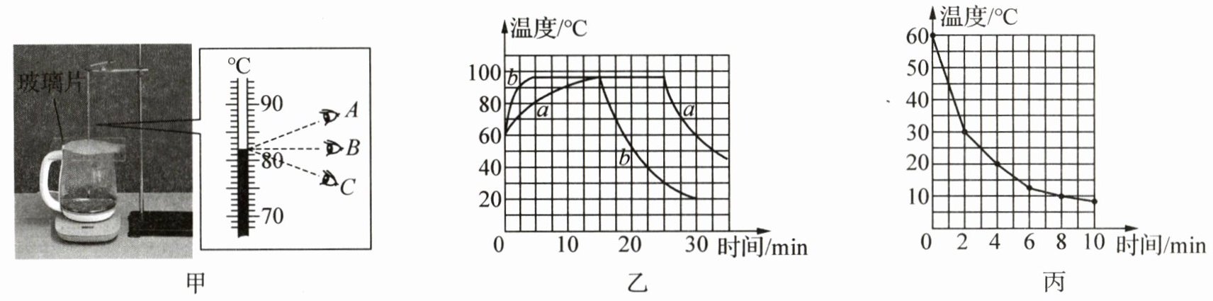 (选填“升温”或“降温”)越快.(6) 实验结束后,当水温降至$60^{\circ }C$,在其自然冷却过程中,州州每隔2 min测量一次水温,描点作出温度-时间图像如图丙,老师指出该图像是错误的,如果要验证老师的判断,你可以怎么做?
