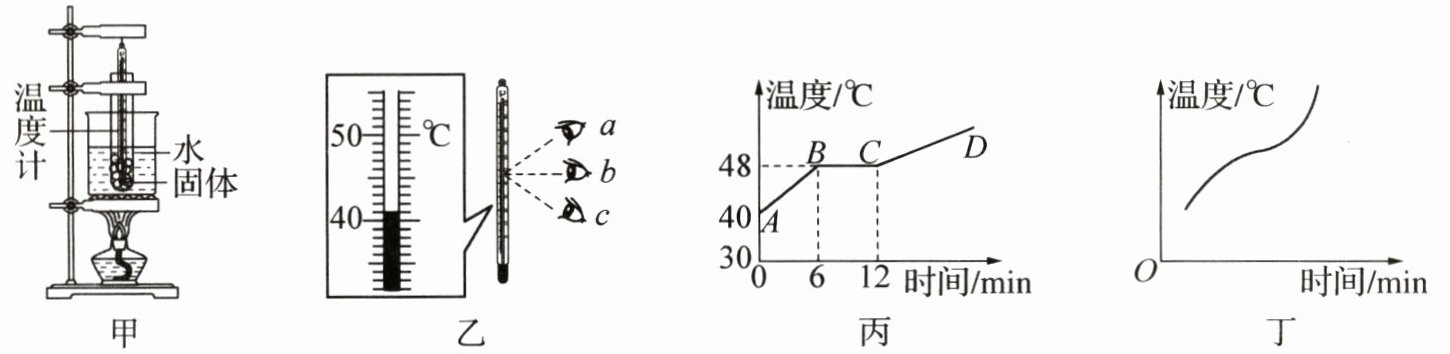 (选填“液态”“固态”或“固液共存态”).(3) 图丁是小刚绘制的蜂蜡的熔化图像,蜂蜡在熔化过程中温度