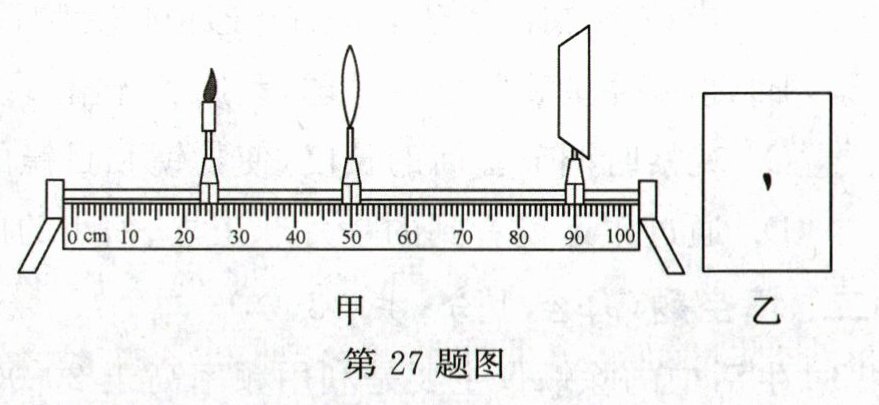 27. (10 分)用如图甲所示的器材探究“凸透镜成像的规律”.
