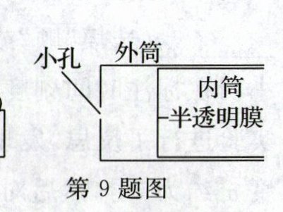 9. 如图所示,用自制的小孔成像装置观察烛焰,在保持小孔和烛焰的距离不变的情况下,下列说法中正确的是 (