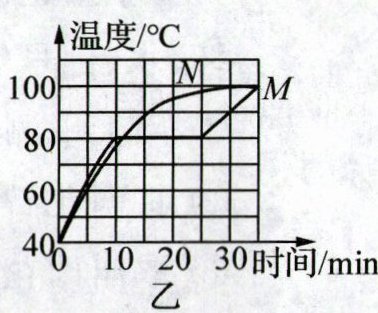 11. 用图甲两套相同装置分别对相等质量的固体 $M$、$N$ 加热,温度随加热时间变化的曲线如图乙,在 $35min$ 内 $M$ 物质从固体熔化成了液体、$N$ 物质始终是固体.下列说法错误的是 (