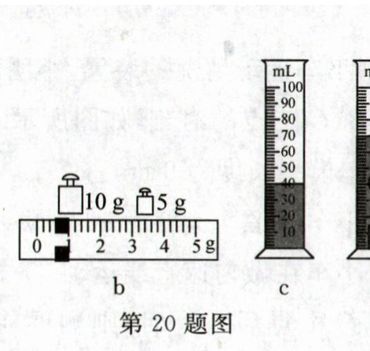 B. 把适量的水倒进量筒中如图 c,记录此时量筒的示数为 $ V_1 $;