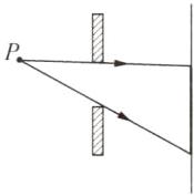 (1) 如图甲所示,$ P $ 为人眼的位置,请在图中作出人眼所能看到的挡板右侧墙壁的范围.