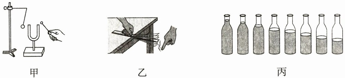 (3) 如图丙所示,8个完全相同的水瓶中灌入不同高度的水,敲击它们,可以发出音调不同的声音.这些声音是由
