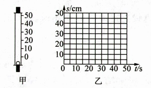 (2) 小明记录气泡上升一段路程后的实验数据如表,请你在图乙坐标系中画出s-t图像.