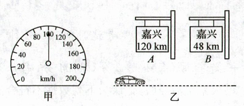 (1)由图乙可知,路牌A到路牌B的路程s=120km-48km=72km.