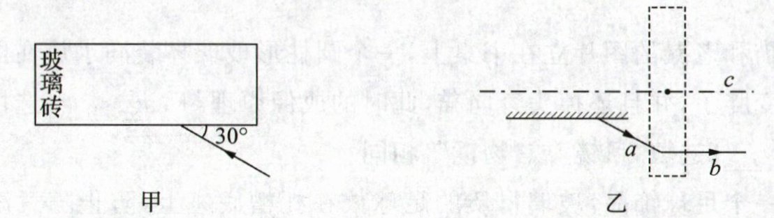 (1)(2025·湖北黄石期中)如图甲,一束光射向一块玻璃砖并穿过.画出这束光进入玻璃和离开玻璃后的折射光线(注意标出法线和离开玻璃后的折射角).