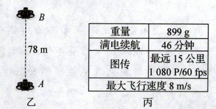 (3) 图丙为该无人机的相关参数.小明在执行某次任务中收到无人机的低电量提醒(电量仅剩20%),并触发自动返航功能,请你估算此时无人机能安全返回的最远距离.