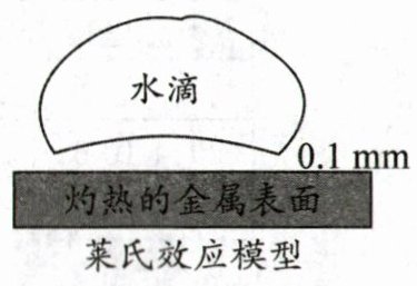 将水滴入温度比沸点略高的热锅中,很快就汽化了.当把锅加热到温度很高时,水滴入锅中后会不停滚动,到处乱跑,这个过程能持续几十秒甚至几分钟,这种现象就是莱顿弗罗斯特现象,也叫莱顿弗罗斯特效应(莱氏效应),如图所示.