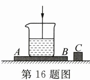 16. (2025·陕西渭南期末)如图所示,在一只烧杯中装半杯水,放在水平木板AB上,用一束光线竖直向下照在水面上,入射角为