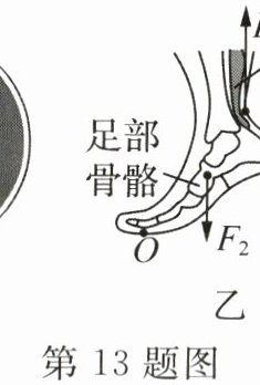 13. 新素养 物理观念 根据情境和题意,完成下列填空.(1)如图甲,将鞋带两端拉扯,鞋帮就会收紧,这与简单机械中的______的省力原理相同.(2)骨骼、肌肉和关节构成了人体的运动系统,最基本的运动都是肌肉牵引骨骼绕关节转动产生的,其模型就是杠杆.如图乙,踮脚时可视为______杠杆.(3)如图丙,工业设计师在设计三线插头时,会将______(选填"L""E"或"N")插头设计得稍长一点.