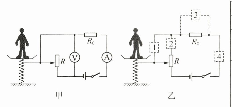 (3)如图乙,小明改装了电路,为使该体重计为优秀等级,应将______(选填"电压表"或"电流表")接入______(填序号)处.