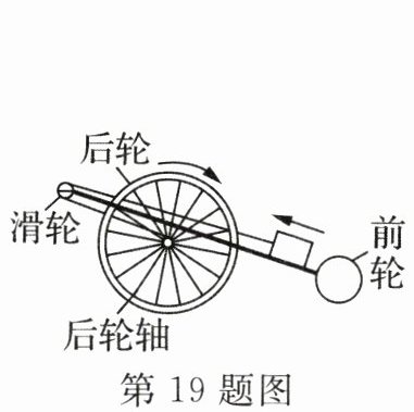 19. 如图是《墨经·经下》里记载的一种斜面引重车:系紧在后轮轴上的绳索绕过斜面顶端的滑轮与斜面上的重物连接.若用该引重车将重 2000 N 的木箱从斜板底端匀速拉到顶端,已知斜板长 2 m、高 0.8 m;后轮轴施加在绳子上的力为 1000 N(不计绳重、滑轮与绳间的摩擦),则该斜板的机械效率为______,此木箱与斜板之间的摩擦力是______N.