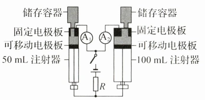 (3)实验过程中,当两个注射器中的液柱长度相同时,发现电流表$A_{1}示数小于A_{2}$示数,由此得到的结论是______.