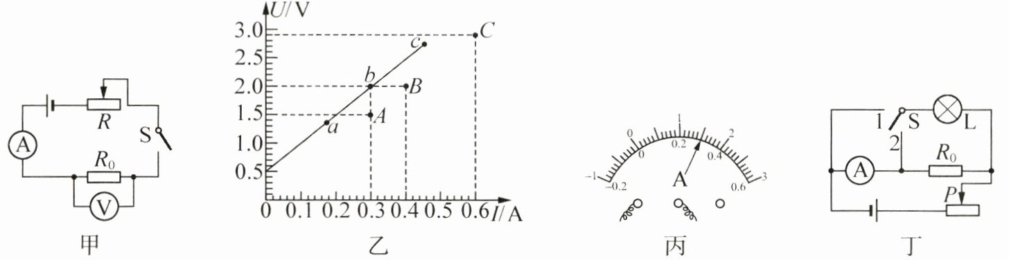 (4)小南设计了如图丁所示的电路来测量小灯泡 L 正常工作时的电阻,已知电源电压恒定,定值电阻阻值为$R_{0}$,小灯泡正常工作时的电压为$U_{0}$,实验步骤如下: