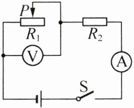 12. 如图所示电路,电源电压恒为 9 V,滑动变阻器$ R_1$的最大阻值为 20 Ω,电流表量程为 0~0.6 A,电压表量程为 0~3 V.闭合开关 S,将滑片 P 从左端移至右端过程中,为保证两电表均不超过量程,定值电阻$ R_2$的阻值至少为( )