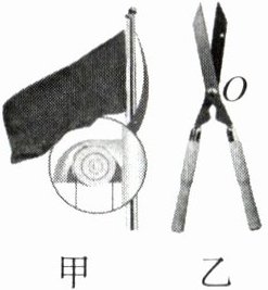 13. 学校举行以“2024 新征程”为主题的升旗仪式,如图甲所示,旗杆顶端的滑轮是一种简单机械,升旗时使用这种滑轮的目的是改变力的______.匀速上升时红旗的动能______.如图乙是园艺工人修剪树枝时使用的剪刀,使用这种剪刀的好处是可以省力,如果树枝太硬不容易剪断,可以使树枝尽量______(选填“靠近”或“远离”)支点 O.