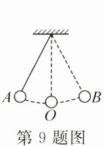 9. 如图,摆球由 A 点静止释放,经过最低点 O 到达 B 点,A、B 两点等高.下列说法正确的是( )