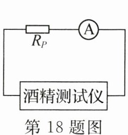18. 某科技活动小组设计了一款酒精测试仪,该装置能将挥发出的酒精吸入并与内置化学物质发生反应产生电压,其工作电路如图,已知 R₀的阻值为 20 Ω.酒精测试仪相当于电路器件中的______;某次测试中,当电流表指针指向 30 mA 时,酒精测试仪两端的电压为______V.从完整性看,该小组设计的电路不足之处是______.