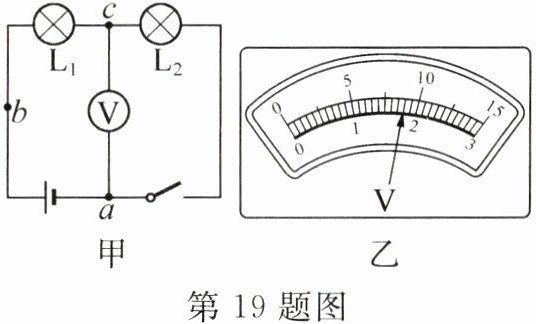 19. 如图甲所示电路,电源由四节干电池串联而成,闭合开关,电压表的示数如图乙所示.