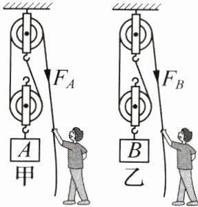 3. 如图所示,用同一滑轮组分别将物体 A 和物体 B 匀速提升相同的高度.与提升 A 相比,提升 B 的过程滑轮组的机械效率较大.不计绳重与摩擦,则提升 B 的过程( )