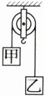 6. 如图所示,相同质量的物体甲和乙在定滑轮的两边处于静止状态,用手指向上轻弹一下乙的底部,物体乙离开手指后到与定滑轮接触前,不计绳重、摩擦和空气阻力,则( )