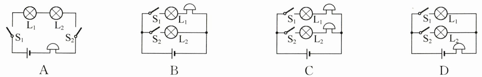 9. 新素养 科学思维 设计一个病房呼叫电路,要求:按下病人床头开关,值班室的电铃会响,对应床头灯亮,提醒护士哪位需要护理.下列图示电路设计最合理的是( )