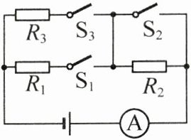 13. 如图所示,电源两端的电压保持不变$,R_1、$$R_2$和$R_3$均为定值电阻.只闭合$S_1$时,电流表的示数为$I_1;$只闭合$S_1$和$S_2$时,电流表的示数为$I_2;S_1、$$S_2$和$S_3$都闭合时,电流表的示数为$I_3.$下列判断正确的是 ( )