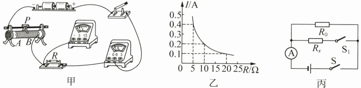 (5) 该小组用电流表和一个定值电阻R₀,测量未知电阻R_x的阻值.他们设计了如图丙所示的电路图,并进行如下实验操作: