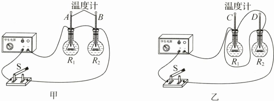 (4) 在图甲、乙两个电路通电时间相同的条件下,温度计______的示数变化最大.