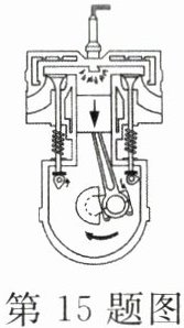 15. 汽油机工作处于压缩冲程中时,汽油机汽缸内气体内能______.图示的四冲程汽油机正处于______冲程,若其转速为600转/分,其每秒做功______次.
