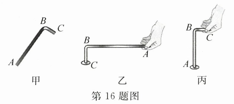 16. 如图甲所示是用于松紧内六角螺丝的扳手,AB>BC,其使用方法如图乙、丙所示,该工具属于______(填简单机械名称),使用时可以______.图乙与图丙两种使用方法相比,图______可以更轻松地拧动螺丝.