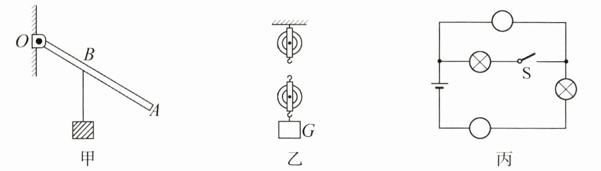 (2) 用滑轮组提升重物,请在图乙中画出拉力F= G/2的绳子的绕法.(不计动滑轮重、绳重和摩擦)