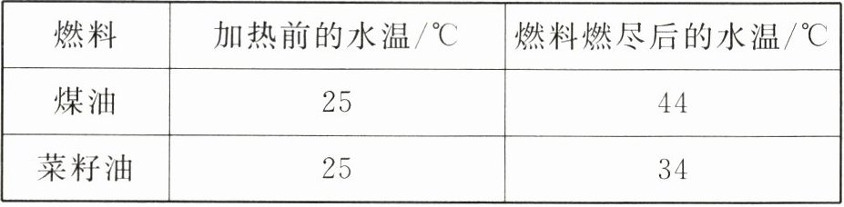 (2)根据他们的实验记录,你认为煤油和菜籽油两种燃料中,热值较大的是______.