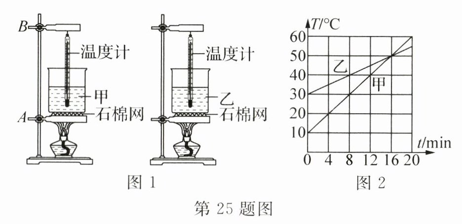 25.(11分)(2025·江苏盐城期中)小明利用如图1所示的实验装置探究"比较不同物质吸热升温的现象",其操作如下.