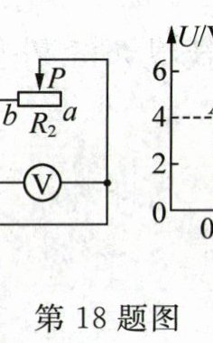 20. 如图所示电路,电源电压为 18 V 恒定不变,电压表量程 0~15 V,电流表量程$ 0~0.6 A,R_1$为30 Ω电阻,滑动变阻器$ R_2$铭牌标有“?Ω 0.5 A”,其阻值已模糊不清.闭合开关,当滑动变阻器的阻值为$1/4R_2$时,电压表示数为 12 V,则铭牌上的阻值$ R_2$为______Ω;确保电路元件安全的情况下,滑动变阻器的最大电功率为______W,电路的最大功率与最小功率之比为______.