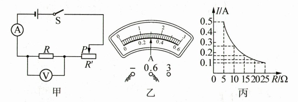 (3)小华利用图甲所示电路继续探究“电流与电阻的关系”,图丙是根据测得的实验数据绘制的电流 I 随电阻 R 变化的图像.由图像可知,R 两端的电压为______V;当 R 的电阻由5 Ω更换为 10 Ω时,闭合开关后,电压表的示数______(选填“变大”或“变小”),此时应向______(选填“左”或“右”)移动滑片,使电压表的示数与上次相同,进而读取电流表示数.