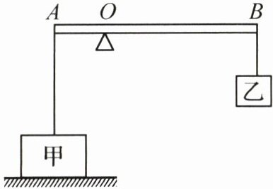 12. 甲物体静止在水平地面上时,对地面的压强为$ 6×10^5 Pa.$现用细绳将甲物体挂在轻质杠杆的A 端,将乙物体挂在 B 端,如图所示,当杠杆在水平位置平衡时,甲物体对地面的压强为$ 2×10^5 Pa.$已知乙物体的质量为 2 kg,AO:AB= 1:4,g 取 10 N/kg.要使甲物体恰好被细绳拉离地面,则下列判断正确的是( )