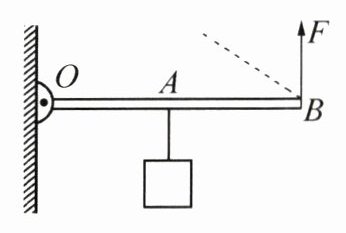10. 如图所示,轻质杠杆 OB 可绕 O 点转动,OA= AB.在 A 点悬挂物体,在 B 点竖直向上拉杠杆使其保持水平平衡,拉力为 F.下列说法正确的是( )