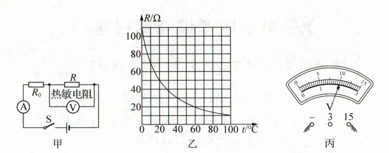 (3)某次测量中,电压表示数如图丙所示,电流表示数为0.2A,则此时热敏电阻R的温度为______℃.