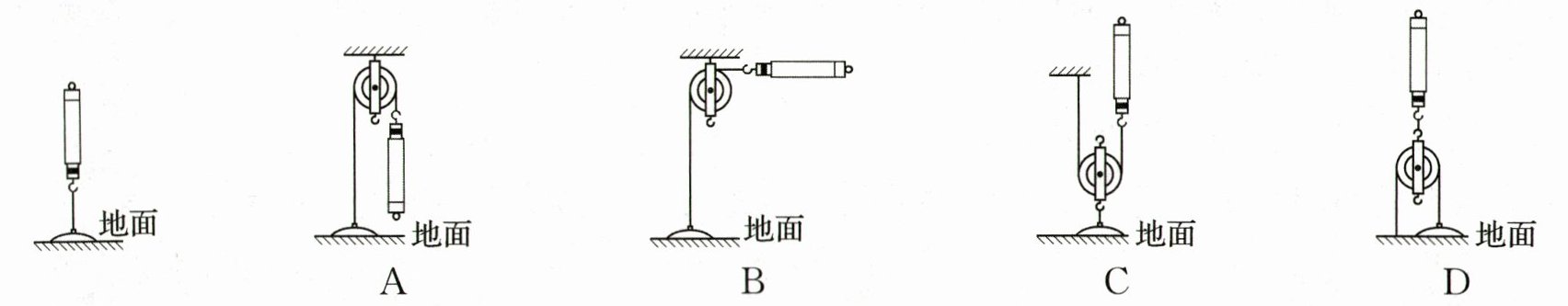 4. (2025·浙江杭州月考)用如图装置测量大气压时,发现弹簧测力计的量程太小,无法拉开紧贴在地面上的吸盘.于是加了一个轻质滑轮,若不计滑轮自重和摩擦,下列操作最有可能完成实验的是( )