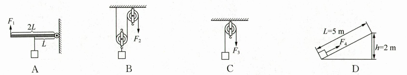 5. (2025·陕西延安月考)分别用如图所示的四种方式匀速提升同一物体,若不计机械自身的重力及摩擦,其中最省力的是( )