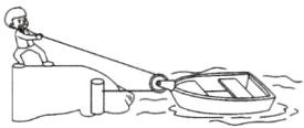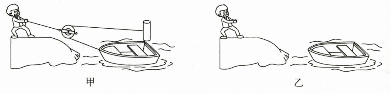 8. (4 分)小红学习了滑轮之后,用一根绳和一个滑轮,借助木桩设计出图甲装置,将船拉上海滩,小明分析后,认为不太合理,请在图乙中画出你的方法.(画出绳和滑轮,并标出木桩的位置)