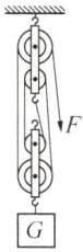 (2)提升物体 G,不计绳重、动滑轮重及摩擦,请画出图丙中滑轮组的绕线方法,要求$F= \frac {1}{4}G$且可以改变施力方向.