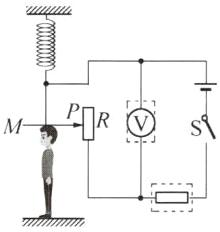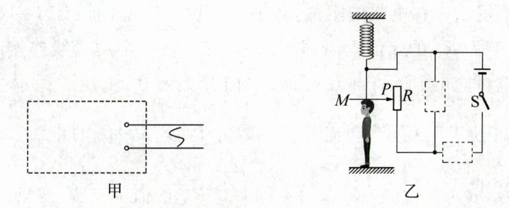 (2) 如图乙所示为一身高测量仪的电路图,请在"─□─""Ⓐ"或"Ⓥ"中选两个填入虚线框,要求被测人身高变高时电表的示数变大.
