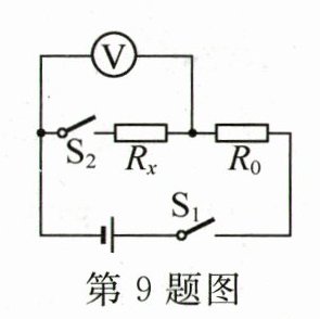 9.(4分)为测量阻值未知的定值电阻Rₓ的阻值,某小组设计了如图所示的电路图,其中电源电压未知且不变,另一定值电阻的阻值为R₀.