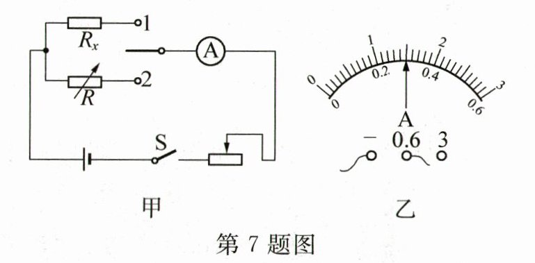 7.(6分)小安同学在学习电路的串、并联特点后,设计了如图甲所示的实验原理图来测量某定值电阻Rₓ的阻值.实验操作如下.
