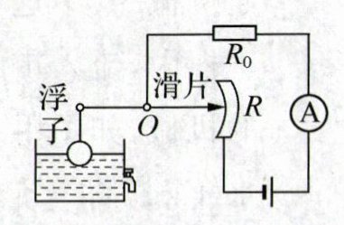 1. (2024·湖北武汉)如图所示是一种测定油箱内油量的装置,其中R是滑动变阻器的电阻片,杠杆的右端是滑动变阻器的滑片,杠杆左端固定着一个浮子,油箱内油量变化时,滑片就在电阻片R两端之间滑动.下列说法错误的是( )